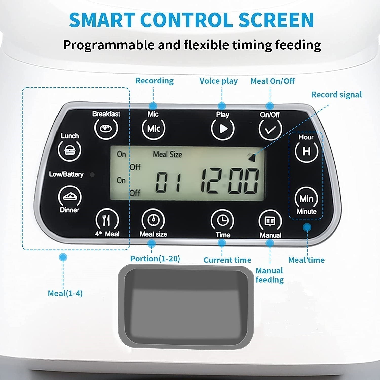 Personalized meal call: You can record a voice message for up to 10 seconds to call your pets to eat, which will be played during meal times. Your voice makes your puppy or cat feel safe and cared for.